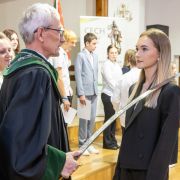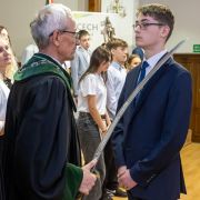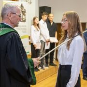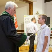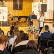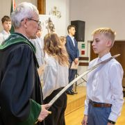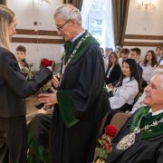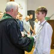W gościnnych murach Państwowej Szkoły Muzycznej w Koninie uczniowie klas pierwszych naszej szkoły 15.10.2025 r. złożyli uroczyste ślubowanie na sztandar i zostali pasowani na uczniów przez Prezesa Wielkopolskiej Izby Rzemieślniczej w Poznaniu, Starszego Cechu Cech Rzemiosł Różnych w Koninie, Pana Marka Skoraszewskiego oraz Podstarszych, Panów Waldemara Lachowicza i Marka Bidzińskiego. Ceremonii dokonuje się szablą Jana Kilińskiego, która jest najwyższym odznaczeniem rzemieślniczym. Młodzież odebrała również symboliczny certyfikat pasowania na ucznia. Zarząd Cechu Rzemiosł Różnych w Koninie, jako organ prowadzący szkołę, postanowił również ufundować nagrodę dla ucznia klasy 2a, Szymona Góreckiego, za bardzo dobre wyniki w nauce w roku szkolnym 2024/2025. Nagrodę wręczyli dyrektor szkoły, Pani Katarzyna Bartczak oraz Prezes Wielkopolskiej Izby Rzemieślniczej w Poznaniu, Starszy Cechu Cech Rzemiosł Różnych w Koninie, Pan Marek Skoraszewski. Uczniowie nie zapomnieli też o Dniu Edukacji Narodowej i złożyli wszystkim nauczycielom oraz pracodawcom najlepsze życzenia.